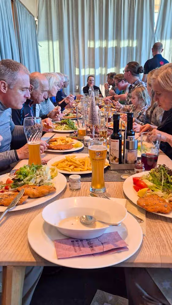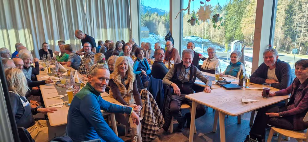 1982 gegründet – versteht es der Tiroler Radverein – obwohl in die Jahre gekommen – immer noch die Motivation im Team hochzuhalten. Bei der traditionellen Weihnachtsfeier im Restaurant „ Hausberg„ am Fuße des Patscherkofel konnten wir an die 40 Teilnehmer begrüßen- sogar unser neues Vereinsmitglied Franz Hergolitsch aus dem Semmeringgebiet ließ es sich nicht nehmen die weite Fahrt nach Tirol auf sich zu nehmen. Obmann Othmar Peer überreichte im Rahmen dieser Veranstaltung unserer Vereinsseele Claudia Triendl ein kleines Geschenk – gewalkte Hauspatschen aus dem Bregenzerwald – natürlich in den Vereinsfarben rosa – als Dank für ihren unermüdlichen Einsatz um den Zusammenhalt im Team.